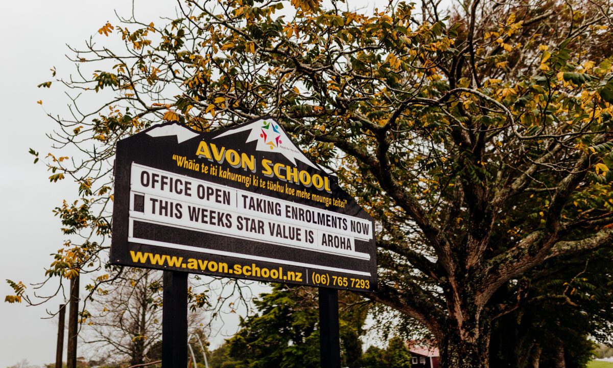 Avon School is situated off the main road in Stratford, Taranaki, nestled on a quiet suburban street, the mountain its backdrop. A bright, welcoming sign at the gate says that aroha is the focus for the week. There’s a sign on the wall in the office that says ‘Shoot for the moon. Even if you miss, you’ll land among the stars’.